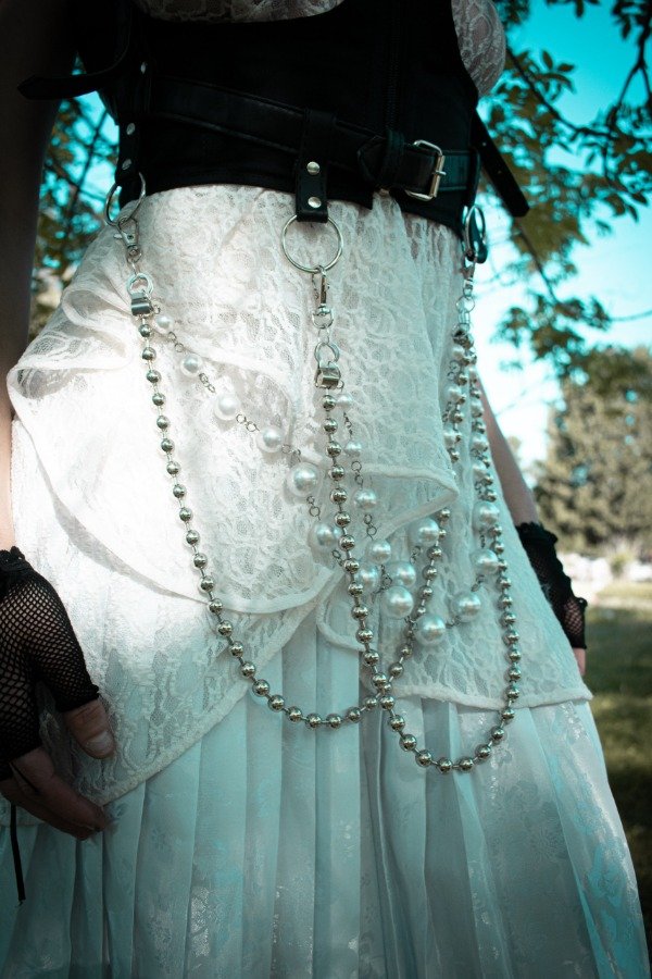 De perlas y cadena de acero, con ganchos en ambos extremos